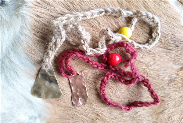 Kinderen vanaf 5 jaar kunnen van een plaatje rood- of geel koper een mooie halsketting maken. Het plaatje koper moet nog glad geschuurd worden, de ketting maak je zelf van touw.
