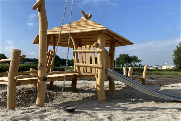Met kabelbaan, waterpomp, zandbak, schommels en meer!