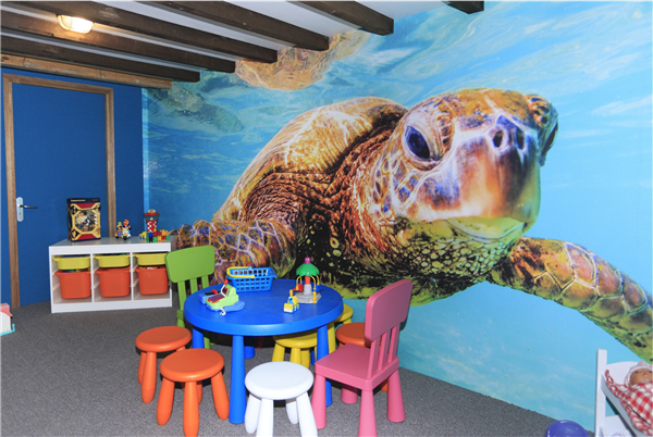 Binnen in het restaurant hebben we een complete nieuwe onderwaterwereld ingericht. Hier ligt genoeg speelgoed waarmee de kinderen zich tussendoor heerlijk kunnen vermaken.