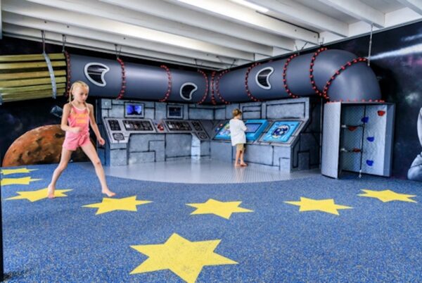 De Indoor SpeelRuimte is een toffe binnenspeeltuin van 240 m² helemaal in ruimte-thema. Kinderen tot 12 jaar ontdekken hier sterren, planeten en sturen vanuit de controlroom hun eigen ruimtemissie aan. Weer of geen weer, hier zijn ze uren zoet.