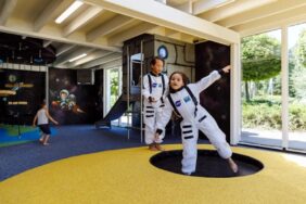 Kinderen gaan op ruimtemissie in de toffe binnenspeelruimte in het thema 'Sterren en Planeten'