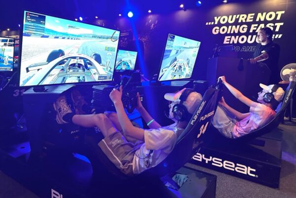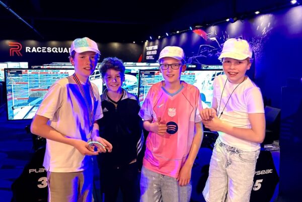 Het racen vonden ze helemaal te gek! Ze kregen een goede uitleg via de koptelefoon van de floormanager en ze konden ook vragen stellen. Dat zit supergoed in elkaar. Ze hebben tegen elkaar geraced, dus alleen met z’n vieren tegen elkaar en niet tegen anderen die er ook waren. Dat vonden ze wel heel leuk. Ze konden ook met z’n vieren via de microfoon van de koptelefoon met elkaar praten, waardoor ze echt aan het racen waren tegen elkaar. Ze vonden het na een uur jammer dat het was afgelopen en waren heel enthousiast aan het vertellen aan elkaar hoe het allemaal ging. Ook de stoelen lagen enorm fijn.
