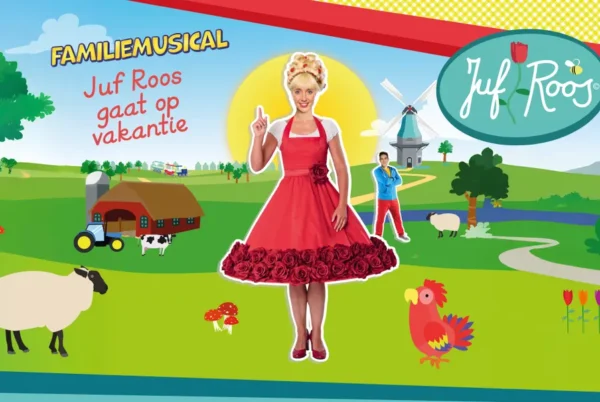 Juf Roos wil graag op vakantie in Nederland en Gijs vindt onderweg een weggelopen hondje. Zou dat samengaan? Ze besluiten op pad te gaan en komen uit op de boerderij van tante Tulp. Maar waar is tante Tulp toch en van wie is toch dat hondje? In dit theateravontuur worden de kinderen en hun (groot)ouders steeds betrokken om mee te doen met de voorstelling. Samen met Juf Roos en Gijs brengen zij het avontuur tot een goed einde. Deze voorstelling is interactiever dan ooit: kinderen verzinnen, roepen en dansen mee en natuurlijk zingt jong en oud mee met alle Juf Roos hits van de afgelopen jaren.