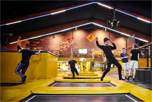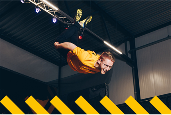 Jumpen, rennen en vliegen bij dit grote trampoline park met Ninja Course en dodgeball-veld!