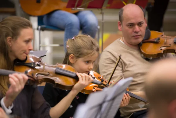 Kinderen kunnen niet alleen luisteren, ze kunnen ook meespelen! Aan het eind van het concert mogen kinderen aanschuiven in het orkest om samen het laatste stuk te spelen. Speel jij een instrument, heb je al twee jaar les en wil je eens meespelen in zo’n groot symfonieorkest? Grijp nu je kans!