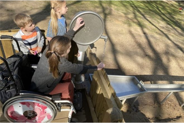 Voor de kinderen is de rolstoelcarrousel absoluut de grote hit. Ook de invalideschommel vinden ze fantastisch. Op de inclusieve verkeerstuin met blindegeleidepad zijn fietsjes in alle soorten en maten waar iedereen iets mee kan. Ook kunnen kinderen zonder beperking ervaren hoe het is als je visueel beperkt bent. Zo komen kinderen jong in aanraking met elkaars situatie en krijgen meer begrip voor elkaar. Zelfs over de hoogte van het zeeppompje op het invalidentoilet is nagedacht en er is een rolstoelvriendelijke picknicktafel en een (rolstoel toegankelijke) trampoline!