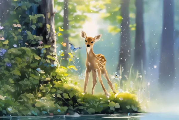 Bambi is een hartverwarmend verhaal over een jong hertje dat opgroeit in het bos. Hij leert van zijn moeder over het leven in de natuur en ontdekt het bos op zijn eigen manier. Hij ontmoet vele andere diertjes, waarmee hij al snel vrienden wordt. Maar zijn onschuldige wereld wordt verstoord wanneer Bambi op een dag verdwaald. Bambi moet nu leren om voor zichzelf te zorgen, terwijl hij ook de verantwoordelijkheid van volwassen worden op zich neemt. Met de hulp van zijn vrienden en zijn eigen moed ontdekt Bambi de kracht van liefde, vriendschap en doorzettingsvermogen tijdens zijn reis naar volwassenheid.