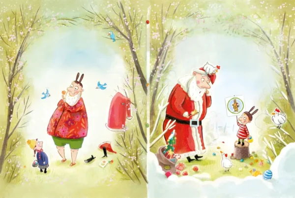 De zoon van de Kerstman heeft een probleem: hij houdt niet van chocolademelk, sneeuw en skiën en hij heeft ook nog eens kerstboom- en rendierallergieën. Hij houdt veel meer van lente, hazen en gekleurde eieren. Eigenlijk wil hij het liefste Paashaas worden wanneer hij later groot is. Maar dat ziet zijn vader totaal niet zitten. Zijn zoon móét hem opvolgen als Kerstman, zelfs zijn over-over-over-grootvader vulde al kindersokken. Het is al eeuwen een familietraditie…