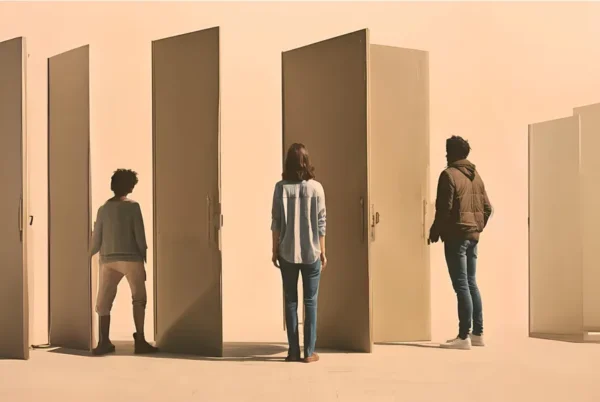 Drie dansers spelen een ruimtelijk, relationeel spel in wereld van 10 verplaatsbare deuren, die telkens van opstelling veranderen en zo een wereld van komen en gaan momenten vormen.