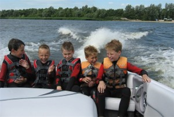 Met z’n allen in een dikke vette speedboot en om beurten wakeboarden of waterskiën als kinderfeestje!