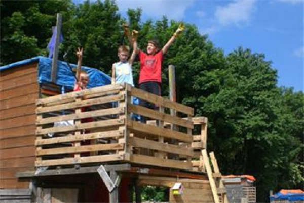 Hutten bouwen op de kinderbouwspeelplaats voor kinderen van 7 tm 14 jaar.