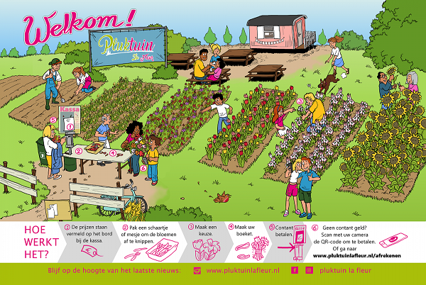 De pluktuinen van Pluktuin La Fleur in Serooskerke, Steenbergen, Noordgouwe, Bergen op Zoom, Hoogerheide, Yerseke, ‘s-Heer Hendrikskinderen en Sint-Gilles-Waas (België) zijn onbemand. Er wordt daarom vertrouwd op alle eerlijkheid. De bloemen kun je contant betalen, of via de QR-code die je scant met je telefoon.