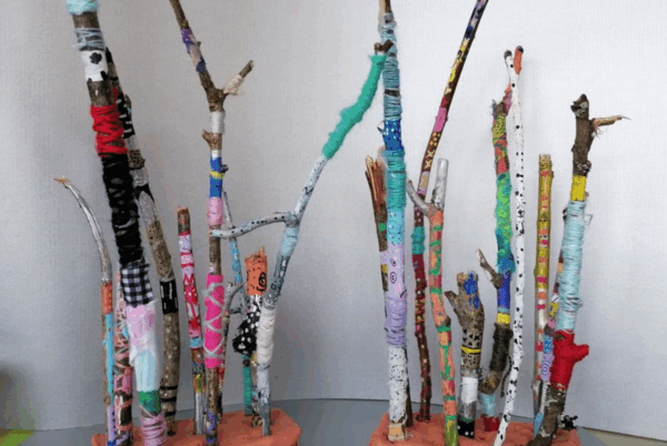 Elke tak krijgt een eigen karakter. En na afloop neem je het kunstwerk gewoon mee naar huis. Mooi voor binnen of als vrolijke blikvanger in de tuin.