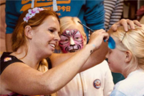 Leuk! Een workshop bij Spoeliegrime. Schminken, buttons maken, glittertattoos en nog veel meer!