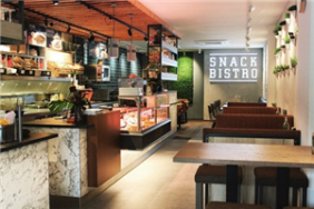 Snackbistro is een fijne plek waar je kunt kiezen tussen cafetariasnacks of gezonde salades.