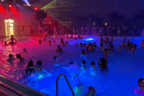 zaterdag 25 april Spetteren op muziek tijdens discozwemmen in zwembad De Koploper in Lelystad.
