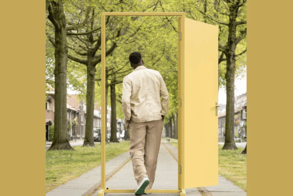 Drie verschillende mensen dwalen door een landschap van deuren, waarachter steeds een andere wereld schuil gaat. Maar hoe vaak ze ook weggaan, het lijkt wel of ze altijd weer bij elkaar en het publiek uitkomen. Visuele trucs, fysieke dans en slapstickachtige scènes zuigen je mee in deze magische zoektocht naar waar je uitkomt als je weggaat. Hoe lang moet je weg zijn voordat je ergens aankomt? Kunnen we ook samen weggaan? Stap door de deur en ontdek het samen!