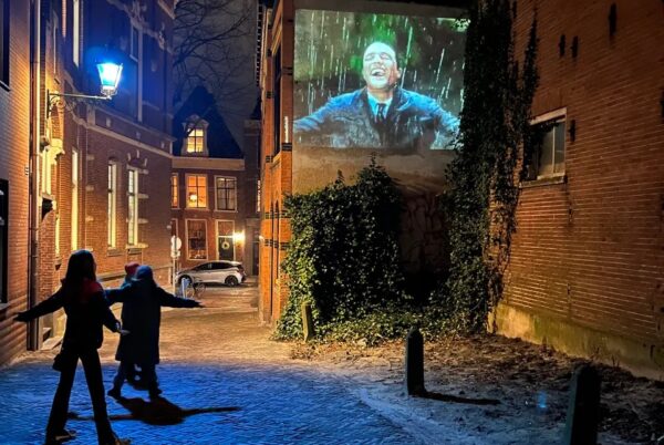Een gevel als filmdoek, een gedicht op een muur en kunst op een monument. Leeuwarden geeft licht tijdens Decemberlicht van Kroft&Smids.