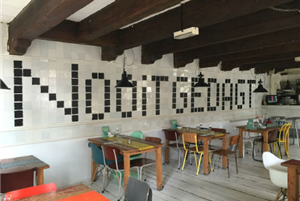 Eétcafe Nooitgedagt zit in één van de mooiste panden in hartje Harlingen en een ware verrassing. Mooie houten vloer, grote industriële lampen, oldschool witte tegeltjes, veel kleur, verse bloemen en geen enkele tafel of stoel is gelijk. En YES er is een speelhoek voor kinderen!