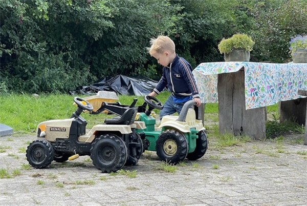 Kom spelen in de zandbak, springen op de trampoline of ga mee de tuin in om bessen en bloemen te plukken.