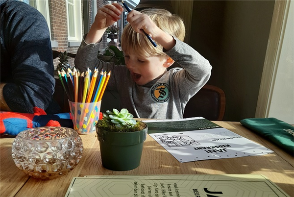 Grandcafe Jan heeft een kinderkaart met speurtocht door het pand. Kids mogen een ijsje maken in de keuken