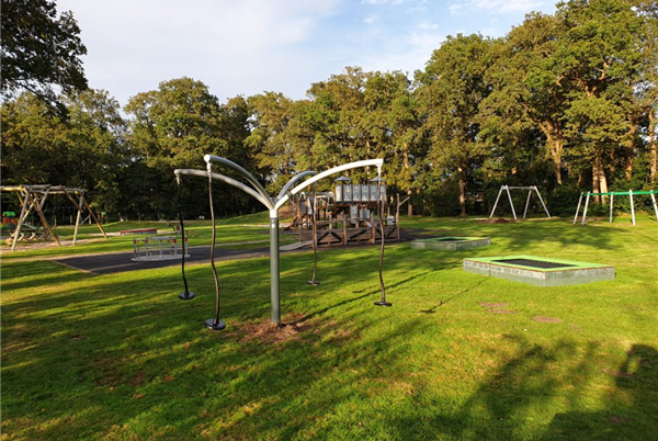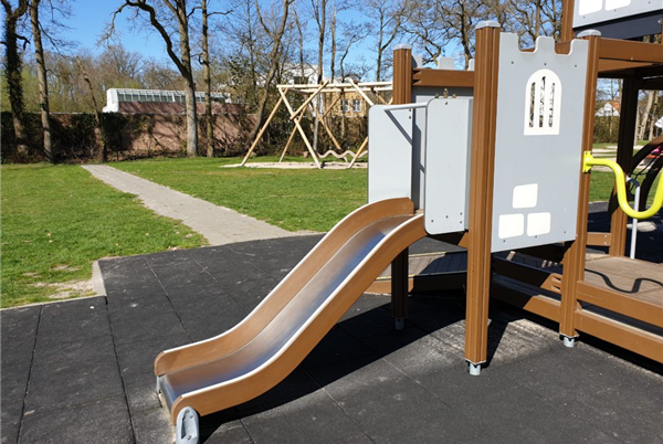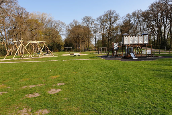 Een fijne speeltuin in het bos voor alle kinderen om samen te spelen.