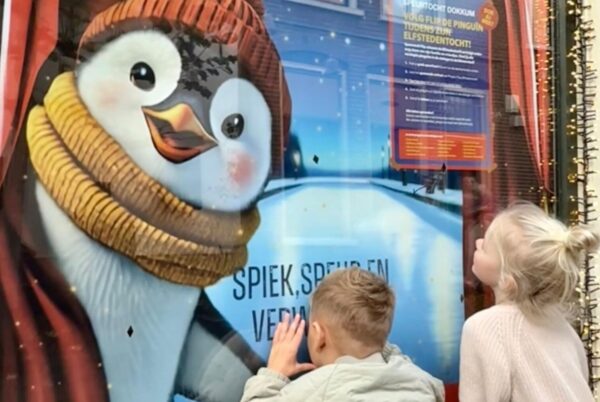 In Dokkum is de Elfstedentocht dit jaar alvast van start gegaan! Niet op het ijs, maar dwars door de binnenstad! In de nieuwe wintereditie van de Speurtocht Dokkum: Pinguïn Flips Elfstedentocht gaan kinderen en hun ouders samen op avontuur. Flip de pinguïn schaatst zijn eigen Elfstedentocht, terwijl zijn familie en vriendjes verstopt zijn in de etalages van Dokkumer winkels en horecazaken. Bij elke pinguïn hoort een letter, en wie ze allemaal vindt, ontdekt de superkracht van Flip.