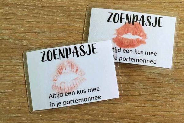 Kun je niet altijd bij elkaar zijn? Dan is een zoenpasje een leuk cadeautje. Maak eenvoudig een pasje met een kus voor onderweg. Zo heeft papa altijd een kus van jou op zak. Hoe leuk is dat!