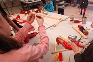 De vonken vliegen er vanaf, houtspaanders in het rond, vieze handen, fronsende wenkbrauwen. Kortom een actieve cursus waar ze zowel gezamenlijk aan een project werken als individueel.