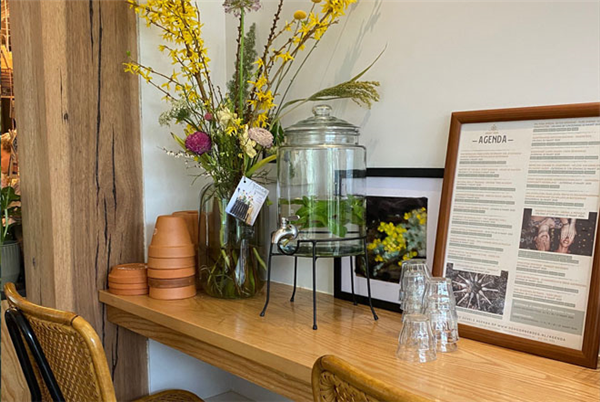 Ze serveren Bij de Tuinman mooie groente gerechten en drankjes, van koffie tot wijn en tuincocktails in het kleine, gezellige restaurant. Ze gebruiken ook zoveel mogelijk seizoensgroentes en producten uit de buurt. De groentes komen uit hun eigen moestuin of van andere kwekers uit de buurt, appelcider van de buurman van de distilleerderij. Leuk om even langs te lopen en het proces te bekijken. En de honing die zij gebruiken komt van de imker in de tuin.