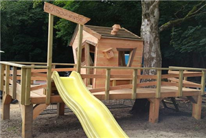 Midden in het bos vind je een gezellig theehuis met een speeltuin. Loop ook het kabouterpad!