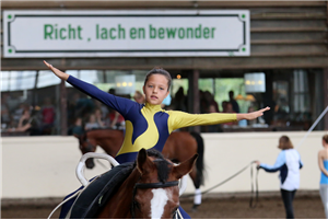 Tijdens het feestje is er altijd één medewerker van de manege bij de kinderen. De spullen zoals caps die jullie nodig hebben kun je bij de manege lenen.