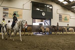 De ponylessen zijn in de zomer bijna altijd in onze buitenrijbaan en in de winter rijden ze lekker droog in de binnenrijbaan. Als je meekomt, kun je ’s zomers vanaf het terras en ’s winters vanuit de foyer de les volgen!