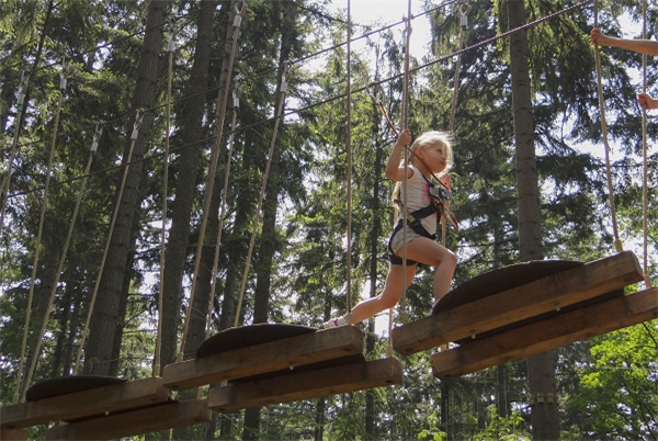 Durf jij de uitdaging aan? De groene route begint op 3 meter hoogte, maar wie durft kan door naar de spannende zwarte route, die tot wel 22,5 meter hoog is! De overgangen tussen de bomen worden steeds uitdagender en zorgen voor een waar avontuur. En geen zorgen, als de zwarte route te zwaar is, kun je altijd een makkelijker pad kiezen en opnieuw proberen.