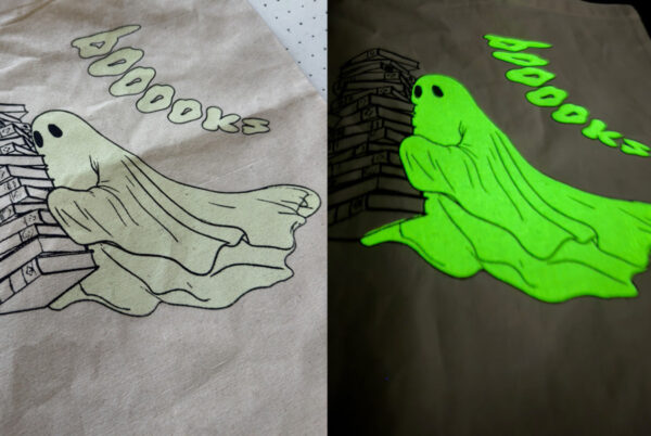 Ze gaan in twee delen zeefdrukken met dag en nacht inkten. Kleuren die je kan zien voor overdag en kleuren die oplichten als het donker wordt: de glow in the dark inkt. Er zijn wel vier gloeiende kleuren! Neem je eigen pyjama of kussensloop mee en maak je eigen kunst voor als je gaat slapen.