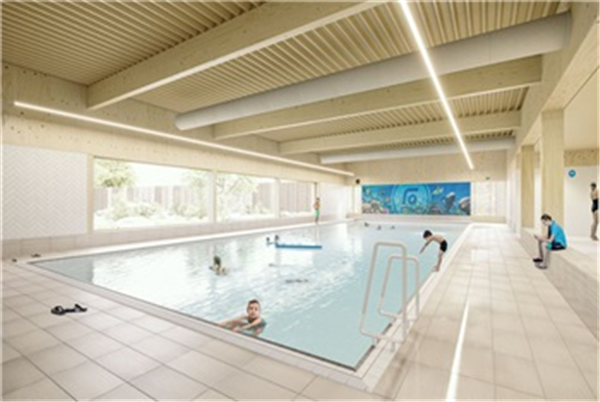 Een ‘eigen zwembad’ waar verschillende activiteiten in worden georganiseerd met o.a. een loopbrug, boten en voor de liefhebbers gezellige muziek.