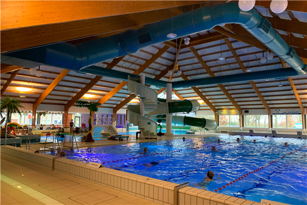 Het sfeervolle zwembad heeft drie baden: een wedstrijdbad waar je rustig een baantje kunt trekken of lekker vrij kunt zwemmen, een recreatiebad met een schitterende glijbaan, een vloeddouche, bruisbank en jetstream en een speciaal bad voor de allerkleintjes met leuke speelmaterialen. Kortom, genoeg waterpret voor iedereen!