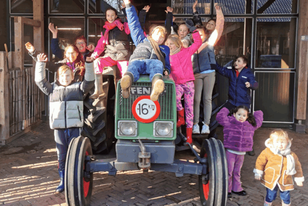 Papa’s en mama’s, opa’s en oma’s zijn gewaarschuwd. Op onze boerderij mag je namelijk vies worden! Meehelpen met de koeien voeren in het weiland geeft nog wel eens ‘vieze kleren’ en van het strooien van gedroogd gras bij de geiten kun je ‘stro-kriebels’ krijgen. Maar we beloven, dat je vooral veel plezier zult beleven.