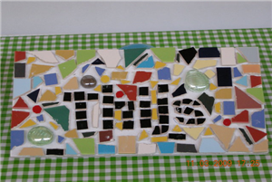 Bij Dinrof kun je knutselen met stukjes tegeltjes. Als je al die stukjes ergens op plakt in een mooi figuur kun je de mooiste kunstwerken maken van een spiegel, een kistje of wat anders!