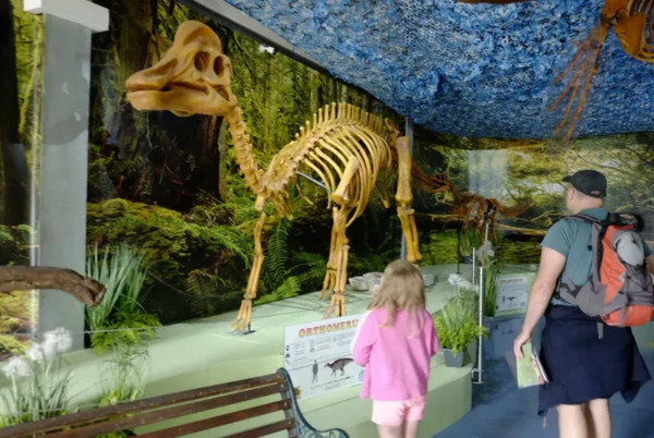 Het “Dinosaurium” is een interactief kindermuseum met dinomodellen, skeletten en fossielen die de co-evolutie tussen planten en dieren belichten, inclusief lokale vondsten zoals de Mosasaurus, Betasuchus en Orthomerus, en modellen uit het voormalige Dierenpark Emmen.