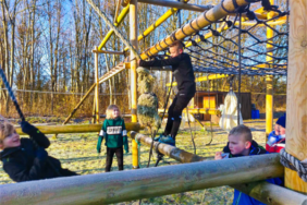 Klimmen en klauteren tijdens het survivalfeestje van Stichting Move On Outdoor!