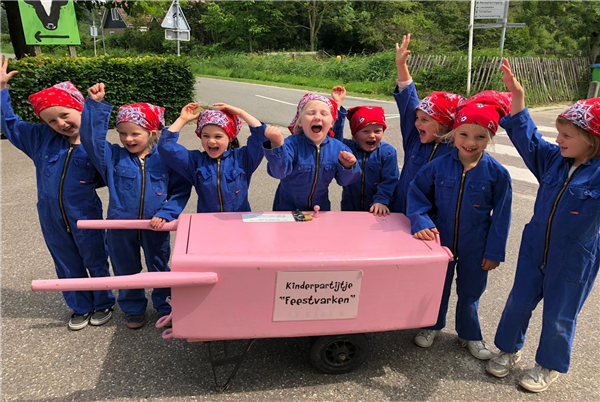 Het verjaardagspartijtje ‘Feestvarken’ is een zogenaamd Doe-het-zelf feestje: je begeleidt het zelf en krijgt daarvoor de benodigde uitleg en materialen.