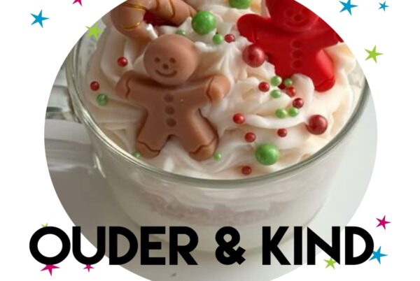 Jullie gieten zelf de kaars, kiezen een heerlijke winterse geur én maken bovenop een speelse ‘slagroom’-topping van wax. Daarna versieren jullie de kaars met vrolijke kerstdecoraties zoals gingerbreadfiguurtjes, kerstkleuren, sprinkles en meer.