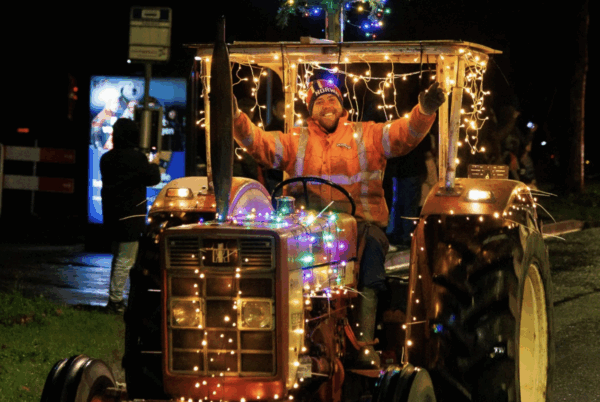 Wil je weten waar de verlichte tractoren zich tijdens de optocht bevinden?