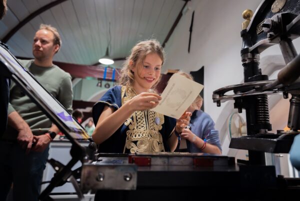 In deze workshop ga je ouderwets drukken zoals ze dat 150 jaar geleden deden. Met letterzetters, vignetten, inktrollen en twee échte drukpersen uit 1870.