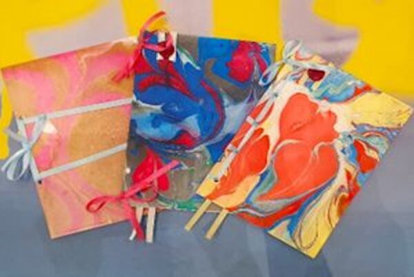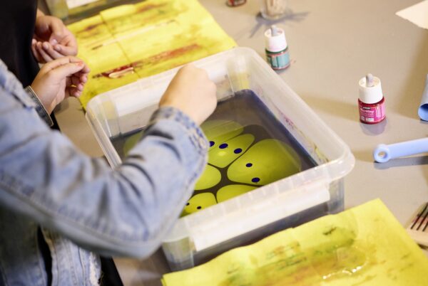 Gratis workshop: Je gaat naar huis met je eigen marmerpapier, een echt kunstwerkje.