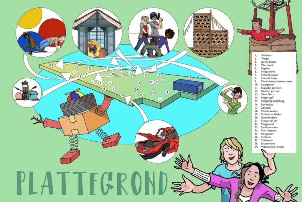 Kliederen in de modderkeuken, hutten bouwen, elkaar uitdagen op het skippybalparcours, een lekker potje midgetgolf spelen, de lenigheid testen bij Twister, zo lang mogelijk hoelahoepen of springtouwen en een dansje doen in de silent disco. Ook os er het spel ‘De vloer is lava’ en zijn er regelmatig ‘Burgemeester van Buiten’ activiteiten.