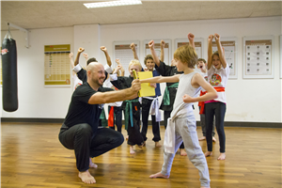 Kinderen leren zich spelenderwijs te verdedigen, met druk om te gaan en voor zichzelf op te komen.