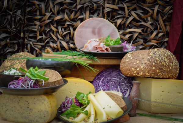 Om 11.00 uur schuif je aan voor een feestelijk buffet vol lekkers. Denk aan ambachtelijk brood, luxe broodjes en een rijk kaasplateau. Salades, carpaccio en warme gerechten zoals roerei met bieslook, groentequiche en verse asperges maken het compleet.