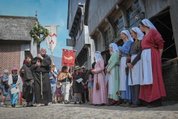 Op 24 en 25 mei, tijdens Pinksteren, beleef je in Archeon in Alphen aan den Rijn een bijzondere middeleeuwse traditie. Geen voorstelling om naar te kijken, maar een processie waar jullie zelf aan meedoen.